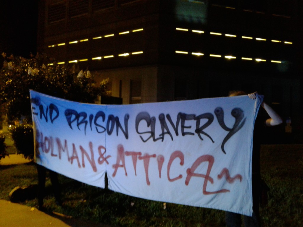 We do this for our friends, family and loved ones currently facing repression, in anticipation of the national prison strike set to occur on September 9th, and to show our comrades currently in revolt in Alabama and elsewhere that they are not alone in the fight against slavery and domination.